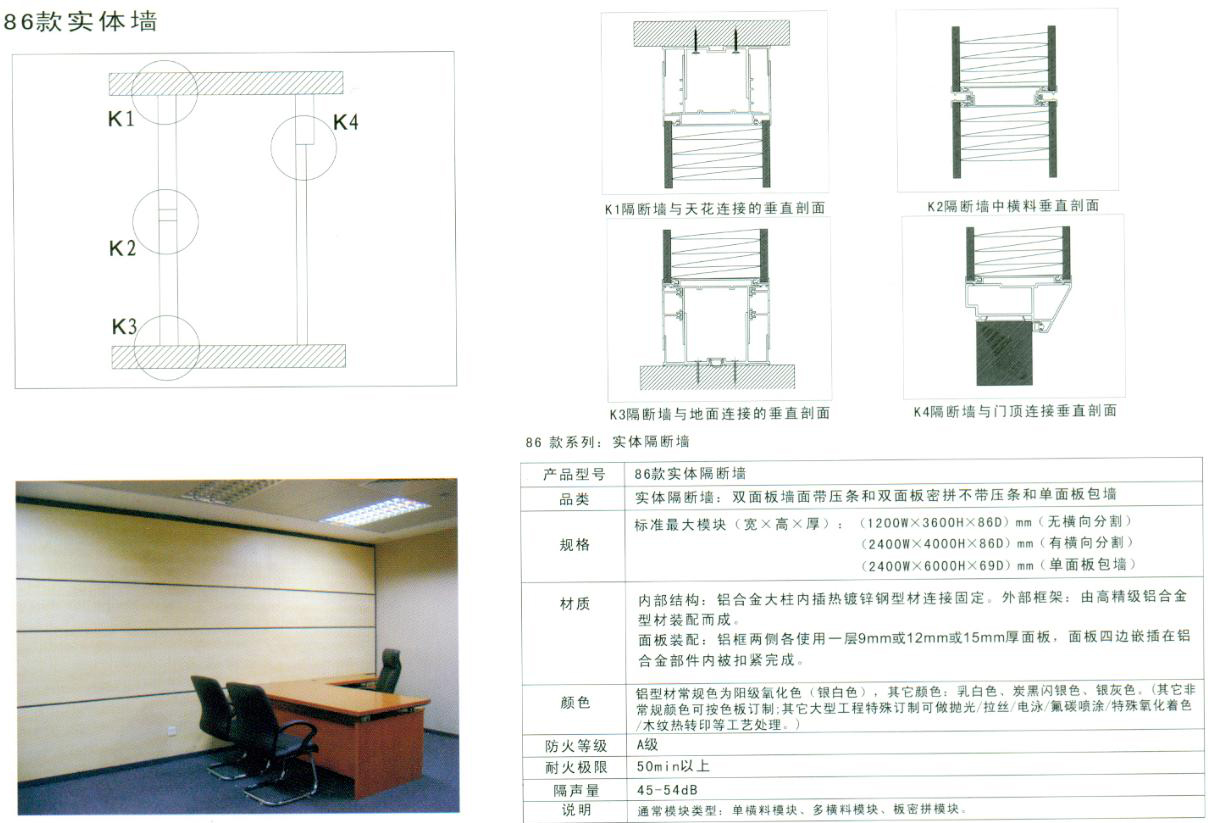 86高隔斷是最為成熟的產品,已經做過很多工程案例,深得廣大客戶認同和喜愛,它的任意拆裝,靈活多變地空間劃分組合,自由吊掛隨意的材質搭配,把辦公空間的藝術之美演繹的淋淋盡致。 鋁框中間橫向壓條為17mm,豎向壓條為13mm,上下槽為65mm,左右壁槽為:65mm,側柱為20mm。