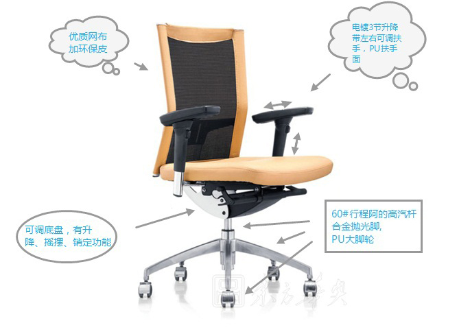 B:合金拋光腳,PU大腳輪,60#行程阿的高汽桿,汽桿上下伸縮12萬次不漏氣。