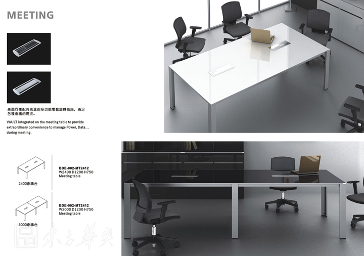 桌面同樣配有先進(jìn)的多功能電動(dòng)旋轉(zhuǎn)插座,滿足各種會(huì)議的要求...
